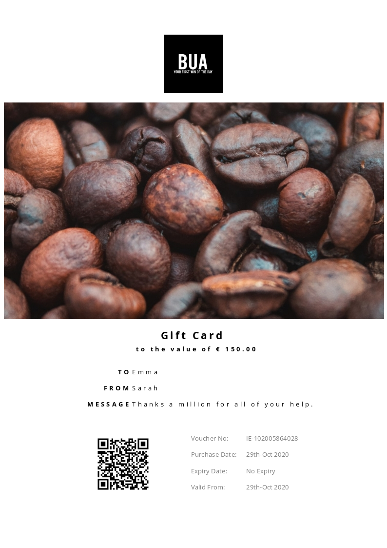 Bua Coffee allows you to purchase instantly printable gift vouchers, special offers and tickets using the Voucher Connect platform.
